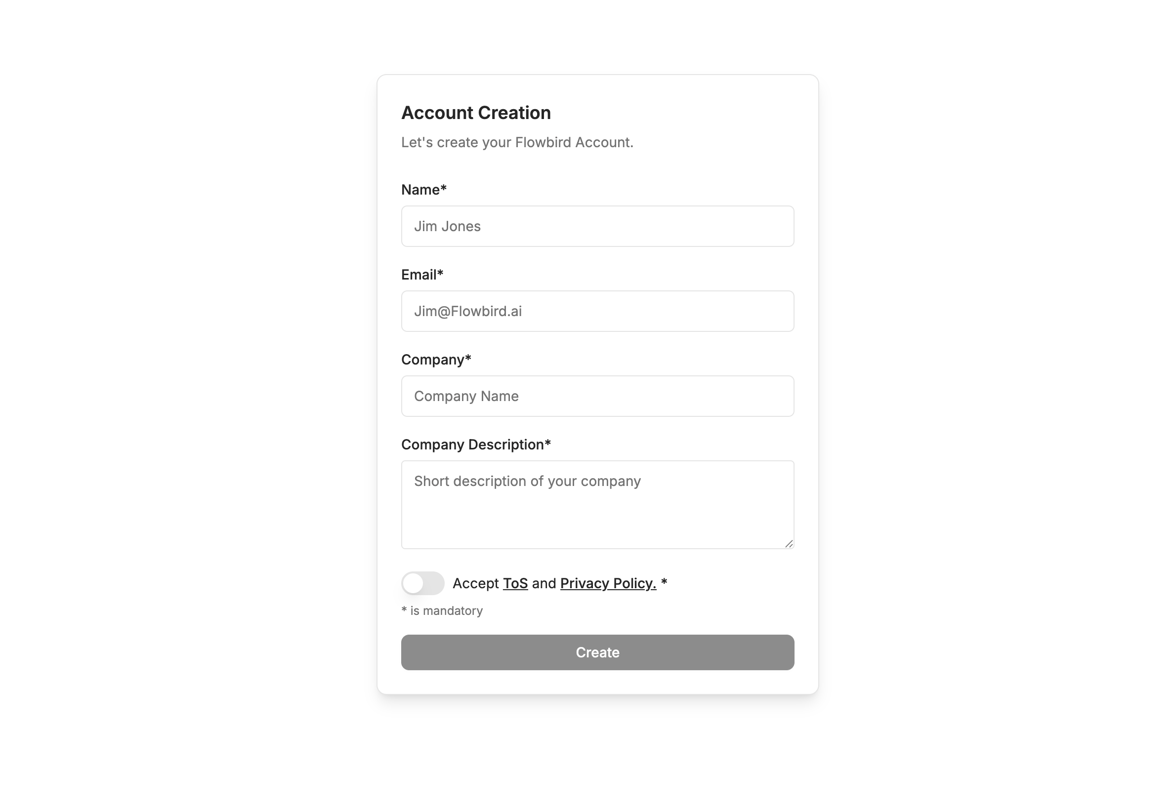 Accepting our Terms of Services and Privacy Policy is mandatory to create an account.
